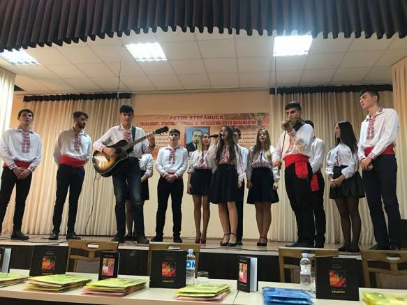 Cu acest gând am intrat în Liceul „Petre Ştefănucă” din Ialoveni, acolo unde ne aşteptau copii frumoşi, îmbrăcaţi în straie populare. Am descoperit aici o şcoală unică, însufleţită de nişte cadre didactice cum rar mai întâlneşti, care erau în zi de sâmbătă în activitate, gata să ne ofere ce aveau mai de preţ, o parte din timpul şi din trăirile lor. Am vizitat unitatea de educaţie inclusivă a şcolii, dotată cu echipamente diverse pentru elevii cu nevoi speciale, sălile de clasă, dar şi camera muzeu, denumită simbolic „Demnitate naţională”, amenajată de catedra de istorie a şcolii. Doamna prof. Tatiana Chiruţă a coordonat un program artistic prezentat de elevii clasei a XI-a de la profilul real. Copiii ne-au încântat cu versuri autumnale, cu muzică din repertoriul regretaţilor Doina şi Ion Aldea Teodorovici şi cu o coregrafie splendid realizată. Sala de festivităţi a şcolii, încăpătoare pentru 200 de invitaţi, s-a umplut de emoţia noastră, iar dacă i-am fi deschis geamurile, sufletele noastre ar fi revărsat curcubeie peste cerul oraşului.