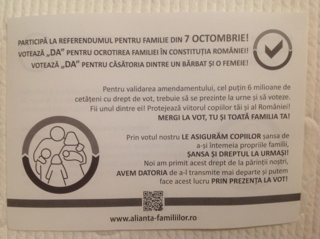 Așadar, ca și mamă a șase copii, vă rog să votati DA! DA pentru familie, DA pentru libertate, DA pentru moralitate, DA pentru viitorul copiilor și neamului românesc!