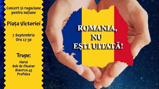 Cum am aflat, pe data de 7 septembrie de la ora 17:30 vom avea concert și rugăciune pentru națiune chiar în Piața Victoriei.