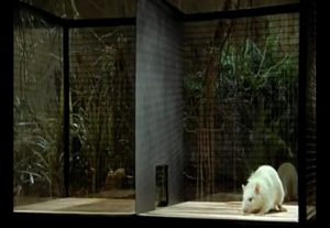 Se folosește o cușcă cu doua spatii delimitate printr-o grila, prevazuta cu o portiță intre ele.