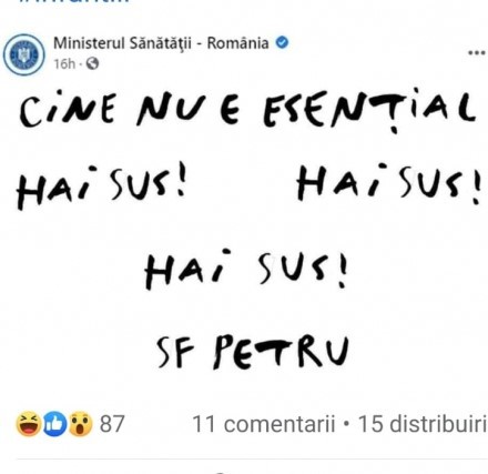COMENTARIU Marius Oprea: Glume naziste la Ministerul Sănătății, care scrie negru pe alb că toți cei “neesențiali” ar face bine să crape. On March 7, 2021March 7, 2021 By GeorgeIn Natura Umana, Opinions Continue reading: https://www.mediafax.ro/social/comentariu-marius-oprea Share this: Click to share on X (Opens in new window) X Click to share on Facebook (Opens in new window) Facebook Like Loading... Related