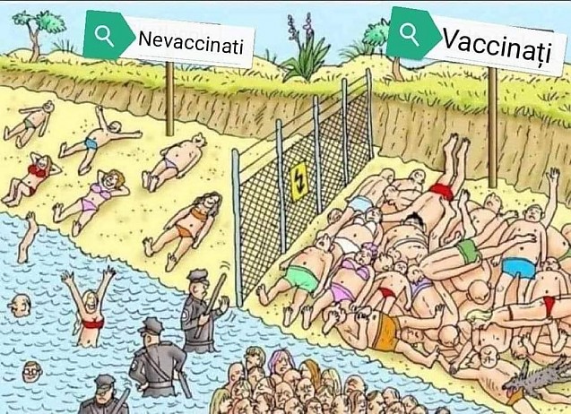 Fondul de vânătoare din România este în creștere! Rasa nevaccinată este noua țintă de luat în bătaia discriminării! Urmează Holocaustul nevaccinaților! Mai trist este că nici vaccinații nu vor avea o soartă mai bună, că netrebnicii ăștia au ceva în cap, destul de neclar ca să le facă coerente mișcările, nici limpede ca să înțeleagă cineva unde bat ei ca tendință, o lume condusă de tablagiul idiot care se dă mare recrutului, că linia albă e verde! A ajuns lumea să fie condusă de cretini!