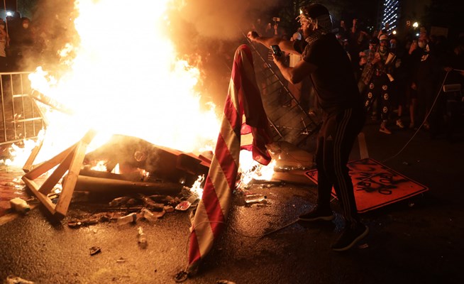 Ce se întâmplă în SUA este punerea în practică a modelului revoluționar globalist perfectat în timpul Primăverii Arabe, Ucraina (Maidan), dar și în România – brigazile Antifa au fost prezente inclusiv pe 10 august 2018, alături de masa de manevră #rezist, condusă de elemente finanțate de diverse fundații ale filantropilor lumii și de angajați din servicii.