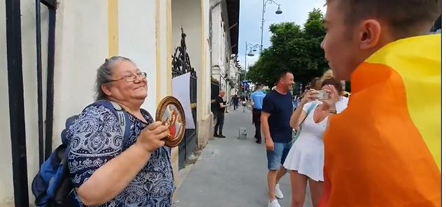 Sâmbătă, la București a avut loc anuala paradă a homosexualilor, la care au luat parte câteva sute de persoane. Unul dintre cele mai interesante momente ale evenimentului a fost dialogul dintre o bătrână care stătea cu icoana-n mână în fața bisericii Sfântul Vasile de pe Calea Victoriei și un homosexual.