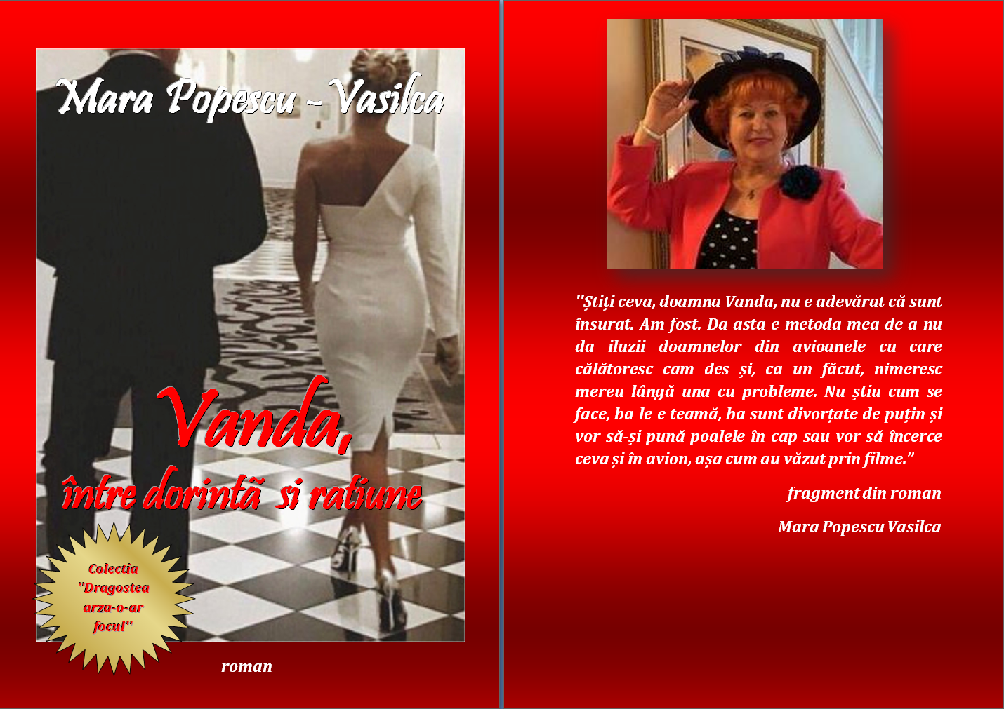 ”Vanda între dorință și rațiune” este un roman real și natural care te face să îți pui multe întrebări referitoare la viață, fericire și iubire, iar scriitoarea Mara Popescu -Vasilca ne îndeamnă cu sensibilitate și căldură, să trăim, cu sufletul și cu inima emoțiile din această carte alături de personajele sale.