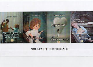 Distinsa scriitoare Aurelia Rînjea care ne-a încântat în ultimele 2 decenii cu peste 40 de titluri de autor, ne surprinde și anul 2022 cu 4 cărți noi, pe care le publică la editura LUCVAL&KEN, în ediții bilingve româno-franceză, cu următoarele titluri: COPIII ȘI POEZIA, ADAGIETTO, PĂPUȘARUL și PRIMA IUBIRE, POEZIA. Cele patru cărți formează un Tot, un întreg literar, conturând imaginea Poeziei, așa cum ea este trăită și dăruită de poetă. Concepția coperților și traducerea aparțin autoarei.