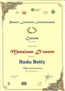 Preotul iconom stavrofor Radu Botiș, paroh în localitatea Țicău (orașul Ulmeni), participant la concursul „Premiul Literar Internațional Corona” organizat de Traduzioni Talabà în Cassano all’Ionio (provincia Cosenza, regiunea Calabria, Italia), a câștigat, la ediția a doua – 2016-2017, dedicată memoriei poetei Viorela Codreanu Tiron, o mențiune de onoare, la secțiunea poezie inedită cu temă impusă: poezia cuantică. Titlul poemului cu care a participat este „De taină voci…”